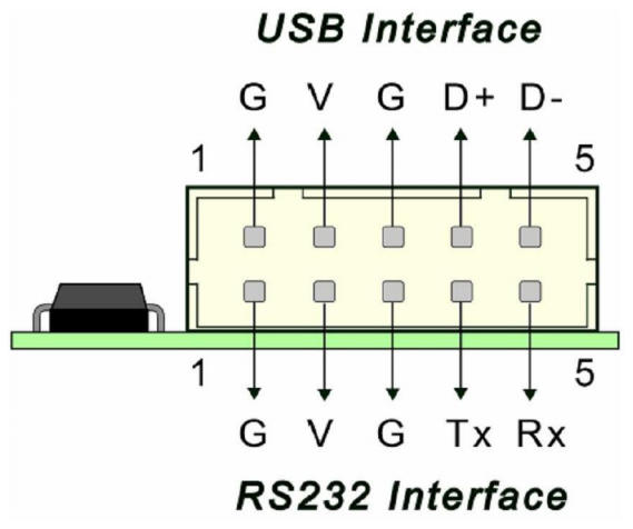 | Interface | USB: 1.1 Full Speed RS232: No parity, 8 data bits, 1 stop bit, baud rate 115200bps I2C: 100K/400K Hz |