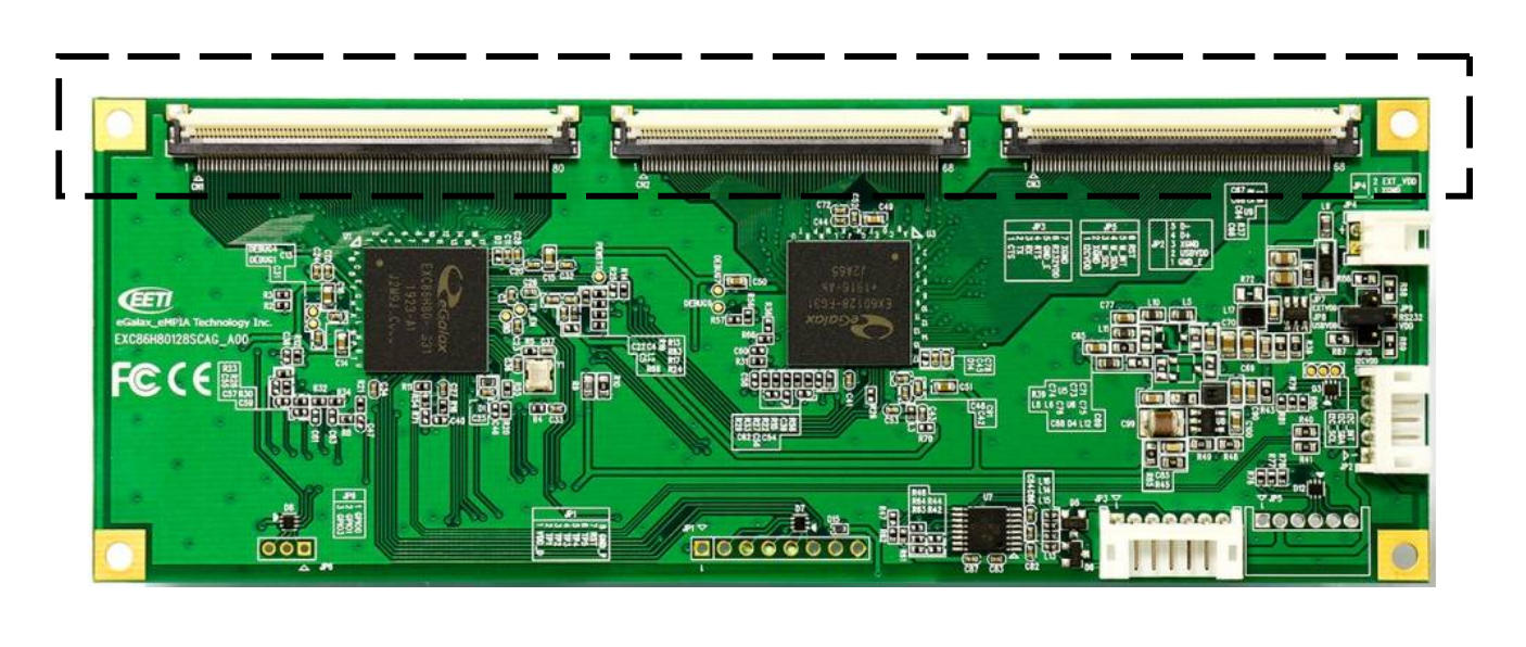 EXC86H80 and EX60128 slave chip. By integrating the advantages of self and mutual capacitance sensing technology, built-in high driving voltage transceiver and a powerful MCU, this controller incorporate most desired features to boost the noise immunity, and support high demand applications in most categories.